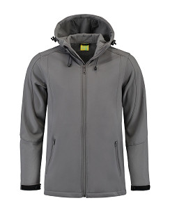 Lemon & Soda softshell unisex jack met capuchon en twee zakken met rits van een hoogwaardige kwaliteit. Softshell is te borduren en hierdoor is het jack in te zetten als gepersonaliseerde promotiekleding of bedrijfskleding.