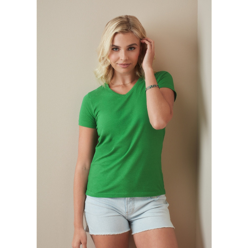 Stedman T-shirt Classic-T Organic voor damesmet korte mouwen en v-hals. De absolute besteller van Stedman van gecertificeerd milieu vriendelijk katoen in een lage prijs categorie.