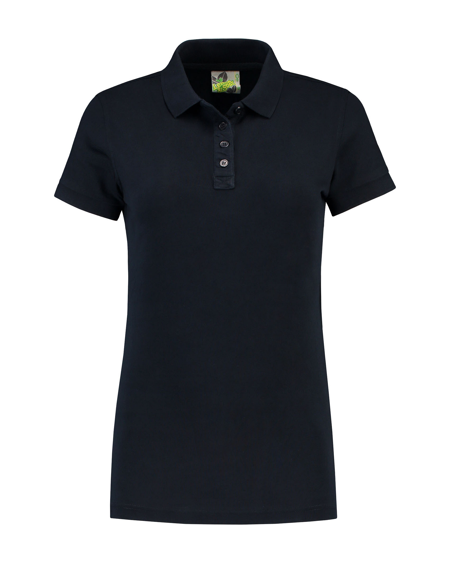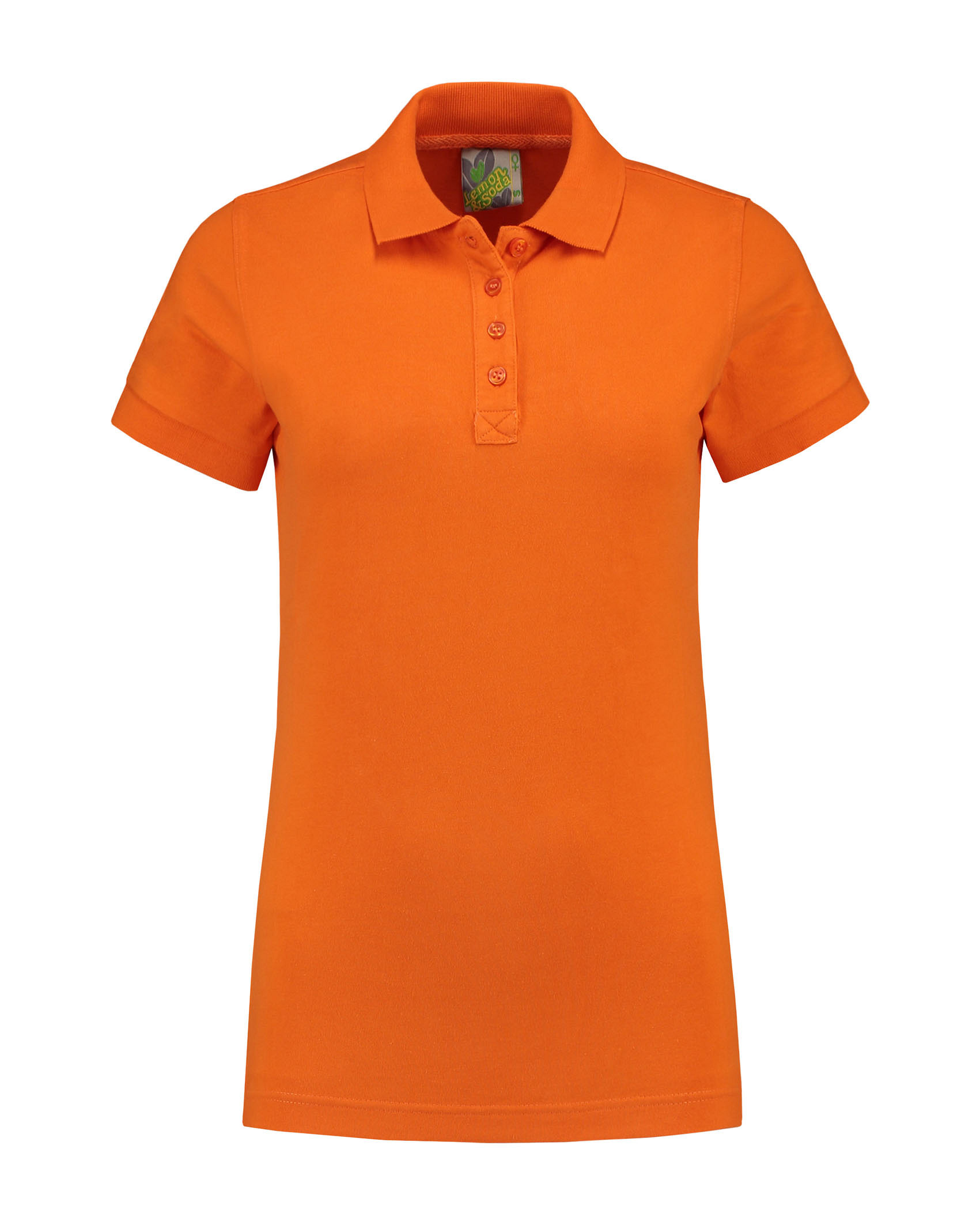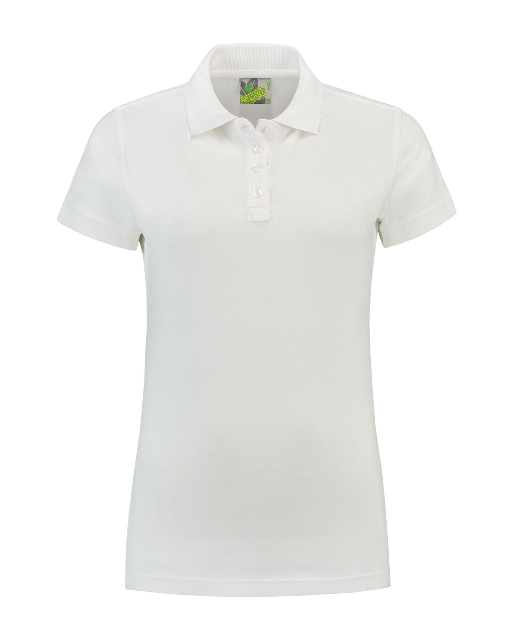 Lemon & Soda dames polo in heavy jersey met korte mouwen, vier knopen en langere lengte. Deze polo kan perfect worden gebruikt als werkkleding.